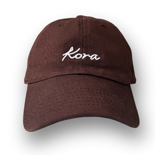 100% cotton cap with silver hardware closure, embroidered with Lola Cora's script as the Kora logo on the front. One size. All merch is final sale.
